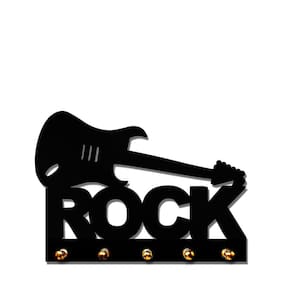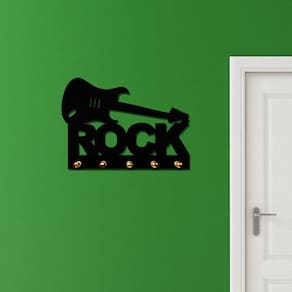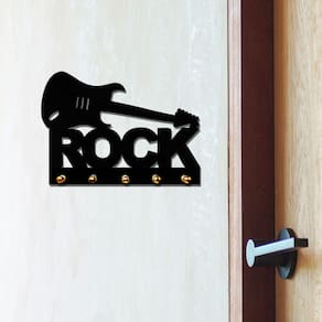 Decore sua casa ou presenteie seus amigos. Lindo Porta Chaves Fabricado com Mdf de 1a. qualidade sua pintura é a mesma utilizada em automóveis com aplicação de primer, lixamento e aplicação de tinta Laca automotiva na cor clássica preto Cadillac com acabamento acetinado. MDF de 3 mm e 6mm na base do suporte dos pinos. Produto resistente, leve e de fácil instalação. Especificações Técnicas: Medidas: comprimento: 22 cm altura: 2 cm largura: 15 cm Material: mdf 3mm Cor: preto Tema: música Formas de instalação: basta utilizar fitas dupla face Quantidade: 1 unidade Características específicas: pinos dourados com acabamento