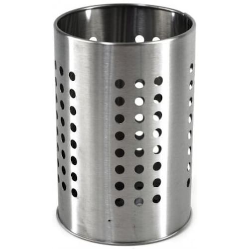 Porta Talheres Redondo de Inox. 18cm de altura 12cm de largura Material: Aço inoxidável; Formato ergonômico e prático; Possui furos em todas as faces para o escorrimento de água; Pode ser utilizado como expositor de talheres; Estrutura reforçada não amassa ou deforma ; Material inquebrável; Altamente resistente a quedas; Design inovador e moderno; Leve e fácil de manejar; Ean: 7899850323949