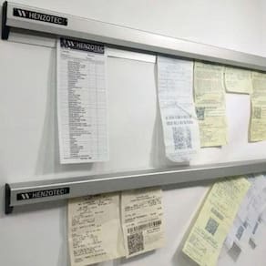 Esferas de Vidro: Permitem o encaixe suave de qualquer tipo de papel e propicia o deslizamento para a direita e para esquerda dos papéis com facilidade, podendo ser retirados puxando para baixo ou para cima, não rasga o papel, e isso agiliza seu trabalho mantendo a sua ordem de produção. Dispensa o uso improvisado do durex, pregos, espetos etc.