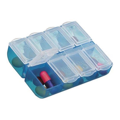 Porta Comprimido Semanal Color's Plasnorthon Organize seus remédios de forma fácil e prática O Porta comprimido semanal é muito útil para quem faz uso contínuo de medicamentos, pois mantém a organização dos comprimidos em compartimentos, facilitando o uso e evitando erros. A tampa indica os dias da semana de segunda a domingo, além de um compartimento extra , facilitando também a visualização dos remédios. O tamanho compacto não ocupa muito espaço na bolsa ou necessaire.