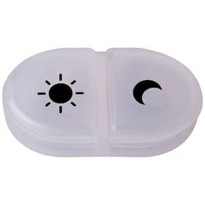 Porta Comprimidos Diário Caixa Para Remédios e Vitaminas Organizador Dia e Noite Oval De Plástico Cor: Transparente Fique a vontade, escolha, compre e tenha uma ótima experiência conosco ; Porta comprimido díario dia e noite para você poder acompanhar qual período que já tomou os remédios. Muito útil, pratico e organizado. Indispensável para quem faz uso contínuo de remédios. O Porta Comprimido é perfeito para quem busca cuidar da Saúde, serve para separar Remédios e Vitaminas. Fácil de abrir ele conta com uma tampa flip flop, de encaixar e possui um ótimo fechamento. Ideal para economizar espaço, ele possui 2 divisórias, ideal para quem toma rémedios noturno e diurno. Ele conta também com uma divisória e desenho da lua é do sol para ajudar a lembrar qual é o da noite e qual é o da manhã. Dimensões / Tamanho comprimento x largura x altura : 7 cm x 4,5 cm x 2 cm Material: Plástico Cores: Transparente Dúvidas Frequentes: P: Produto Contém R: Sim, produto inclui e 30 dias de . P: O Pedido é Enviado Quando