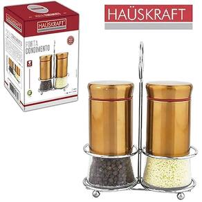 Fácil alcance de temperos na hora de cozinhar é com o Porta Condimento da Hauskraft! Com suporte e recipientes especiais, comporta até 2 condimentos, conferindo mais organização e estilo ao espaço. Feitos em vidro, os recipientes garantem a conservação dos alimentos e facilidade na limpeza.
