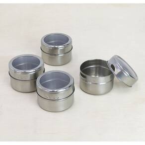 Informações Técnicas: 04 potes em aço inox e base magnética. 01 base em aço inox 02 saídas para o tempero. Imã na base dos potes. Capacidade de cada pote: 50 ml.