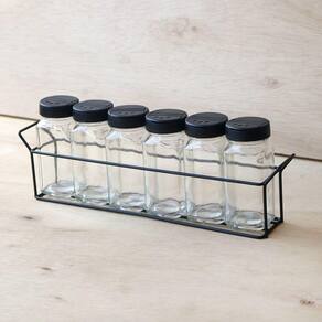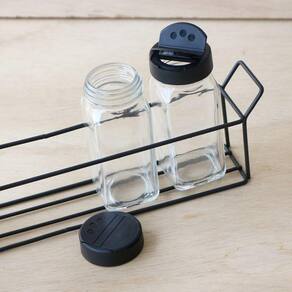 PORTA CONDIMENTO DE VIDRO COM SUPORTE ARAMADO PRETO 100 ML CADA POTE - VDA06037.