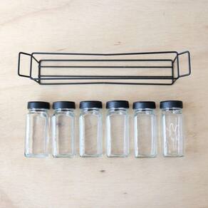 Contém na embalagem: 6 Porta condimento e 01 suporte aramado preto.