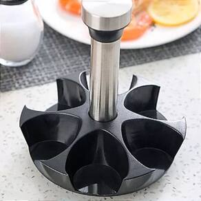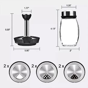 Suporte Giratório Prático: O suporte giratório permite fácil acesso a todos os potes de tempero, facilitando a seleção do tempero certo durante o preparo das refeições. Sua base estável garante que o suporte gire suavemente sem risco de tombar. Conjunto com 6 Potes: Este conjunto inclui 6 potes de vidro, ideais para armazenar diferentes tipos de temperos, como sal, pimenta, orégano, páprica, cominho, entre outros. Cada pote tem uma capacidade ideal para armazenar uma quantidade generosa de temperos sem ocupar muito espaço. Tampas Ajustáveis em Aço Inoxidável: As tampas dos potes possuem ajustes para diferentes tipos de saída, permitindo a dosagem perfeita de cada tempero, seja em pó, grãos ou flocos. Com três modos de abertura, você pode escolher entre despejar, polvilhar ou usar uma saída controlada. Design Moderno e Funcional: Os potes são feitos de vidro de alta qualidade, que além de durável, permite visualizar o conteúdo e identificar rapidamente o tempero desejado. As tampas e o suporte em aço inoxidável oferecem um toque moderno e sofisticado, que complementa qualquer estilo de cozinha. Fácil de Reabastecer e Limpar: Os potes são fáceis de reabastecer, com bocas largas que facilitam o manuseio dos temperos. Além disso, as tampas são removíveis para uma limpeza completa, garantindo a higiene dos seus temperos. Especificações Técnicas: