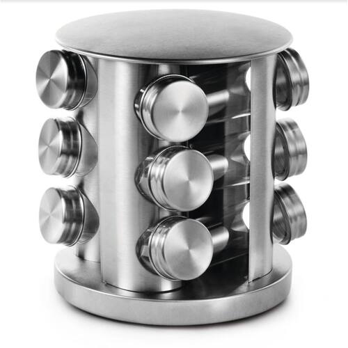 Porta Condimentos em Inox Com Base Giratória Funcionamento O kit porta condimentos em inox funciona de maneira bastante simples. Para utilizá-lo basta que se abra o pote, adicione o tempero em seu interior, feche e pronto. O grande diferencial deste pote está no material do mesmo em aço inoxidável e totalmente vedado, o que permite que o tempero seja totalmente isolado de efeitos externos e possua excelente qualidade e durabilidade. Outra grande vantagem do kit porta condimentos está na base giratória em aço inoxidável que o acompanha. Isso permite que os temperos sejam expostos de maneira extremamente prática e bonita. Pot fim, cada pote possui vedação com rosca e tampa dosadora, o que faz com o tempero seja dosado com precisão e praticidade. Mais características - O kit acompanha 12 porta condimentos; - Material: Aço inoxidável; - Acompanha base giratória em aço inoxidável; - Possui tampa dosadora para temperos; - Formato ergonômico e prático; - Pode ser utilizado para qualquer tipo de tempero; - Estrutura reforçada não amassa ou deforma - Extremamente leve para girar; - Altamente resistente a quedas; - Design Inovador e Moderno; - Leve e fácil de manejar; - Garantia e Facilidade na troca; Medidas Tamanho: 21,5 x 19 x 19 cm Peso: 1700g Embalagem: Litografada Ean: 7897845561734