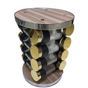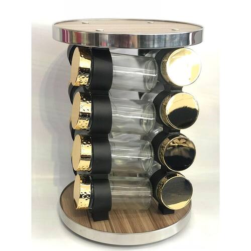 Porta Condimentos 16 Frascos Inox Tampa Dourada -