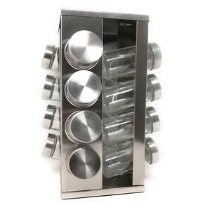 Porta Condimentos E Tempero Giratório Inox 16 Potes De Vidro