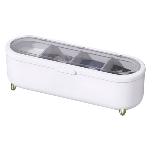 CARACTERÍSTICAS PRINCIPAIS:- Prático e elegante.- Ideal para manter a cozinha limpa e organizada.- Possui divisórias removíveis.- Acompanha colheres para maior praticidade ao utilizar os condimentos.- Capacidade de armazenamento ideal para seus temperos.- Tamanho: 26cm x 7,5cm x 8,7cm.- Material: Plástico.- Peso: 300g.TEMOS SEU PRODUTO EM ESTOQUEENVIAMOS SEU PEDIDO EM ATÉ 1 DIA ÚTILAPÓS A CONFIRMAÇÃO DO PAGAMENTO.