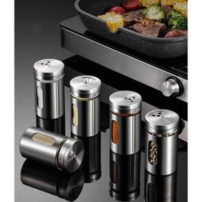 Porta Condimentos Saleiro Inox e Vidro Com Visor Médio Lindo Porta Condimentos Saleiro Inox e Vidro Com Visor Médio produto rico em detalhes e beleza, em aço inox e vidro tornando uma peça atrativa e decorativa, tanto na cozinha, mesa ou área da churrasqueira. Os temperos ficam em vidros com tampa dosadora totalmente vedada, garantindo a qualidade e durabilidade do produto. O porta tempero tem um visor para que você possa escolher facilmente o que precisa para temperar sua comida da melhor forma. Fácil de limpar, de vidro são cobertos por tampa de inox e acabamento de inox nas laterais, apresentando um ótimo design e permite manter sua cozinha limpa e suas especiarias em bom estado de conservação. Medida do pote: 8 cm x 4,5cm altura x diâmetro . Cada pote comporta 80 ml de temperos Material: Aço inoxidável e Vidro; Possui tampa dosadora para temperos Tampa giratória de 4 posições: fechada sem orifícios , com orifícios 2 mm, 3 mm e 4 mm. Estrutura reforçada não amassa ou deforma ; Ref:6963 Ean: 7908630207840