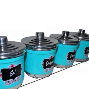 É um conjunto de potes organizadores para temperos, que auxilia no preparo das refeições, além de dar um charme especial para a cozinha. Posicionar o porta temperos longe da luz do sol, do calor do fogão e de locais com excesso de umidade é imprescindível para a conservação dos condimentos. Reserve um espaço fresco e arejado para manter o objeto e garantir a durabilidade dos temperos.