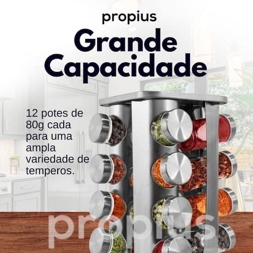 - Otimização do Espaço: Nunca mais perca tempo buscando temperos. Tudo o que você precisa, organizado em um único lugar.