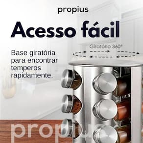 - Praticidade no Dia a Dia: Com a base giratória, os temperos que você precisa estão sempre ao alcance, sem esforços.