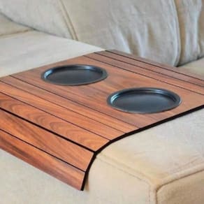 Porta Copo em Madeira Liso Flex - Ideal para braço de sofá- Mantém o copo em posição para não cair- Suporta 2 copos