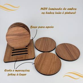 Os porta-copos além de serem práticos, evitam manchas ou marcas sobre os móveis. Este item é um daqueles detalhes que fazem toda a diferença.Existem diversas opções de porta-copos, que são funcionais, e que contribuem na decoração do ambiente.Os Jogos de Porta-Copos da linha Geométrica, além de lindos são ideais para complementar sua mesa que garante um visual bonito e sustentável.O MDF impede a proliferação de bactérias, é durável, de fácil higienização e muito leve. FABRICAÇÃO:Fabricação é 100% própria, nossa matéria prima é MDF de primeira qualidade, com corte a laser, acabamento perfeito e muito fácil de limpar. OBS.: Por ser de madeira o produto não deve ser lavado, para realizar a limpeza utilize um pano levemente úmido com água ou multiuso.JOGO CONTÉM 6 PEÇAS + SUPORTEDimensões de cada peça:Largura: 90mm;Comprimento: 90mm;Espessura: 6mm.