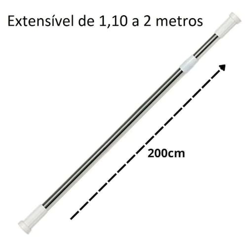 01 Varão Extensível Resistente Porta Cortina Box Banheiro 110 até 200 cm M