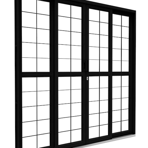 Com design equilibrado e visual contemporâneo, esta porta de correr central alia segurança, funcionalidade e luminosidade. Composta por quatro folhas, sendo duas móveis e duas fixas, oferece abertura central que amplia a passagem e integra ambientes com elegância.