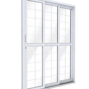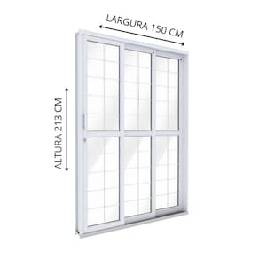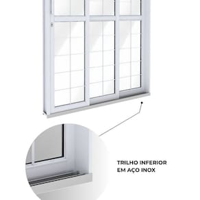 Possui duas folhas móveis e uma fixa, com grade quadrada que valoriza o visual do ambiente sem abrir mão da proteção. O vidro liso de 4cm permite ampla entrada de luz natural, garantindo leveza e conforto visual.