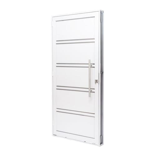 Produto pronto para Instalação; Com a fechadura Instalada Pintura na cor branco Poliéster RAL 9003 - Resistente a UV Não requer pintura a garantia; Puxador em Inox de 40 cm. Produto Qualificado com garantia de 7 anos Largura do Batente: 12 Acabamento do Puxador: Inox Acompanha Batente: Sim Acompanha Fechadura: Sim Acompanha Guarnição: Não Acompanha Manual de Instalação: Sim Acompanha Puxador: 02 Altura: 215 Ambiente Principal: Sala de Estar Cor do Batente: Branco Elétrica: Não Espessura: 12 Isolamento Acústico: Não Itens Inclusos: 1 Porta, Kit Ferragens e Manual de Montagem e Instalação Lado de abertura: Direita Largura: 100 Manual de Montagem e Instalação: https://cdn2.madeiramadeira.com.br/atributo/ramassol/1359207-manual-portas.pdf Material do Batente: Aço Material do Puxador: Alumínio Necessita Montagem: Não Número de Folhas: 01 Origem do Produto: Nacional Peso: 36.74 Possui Grade: Não Tamanho: 215x100cm Tipo de Porta: Abrir Tipo de Puxador: Externo Vidro incluso: Não