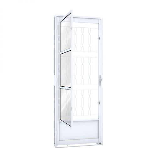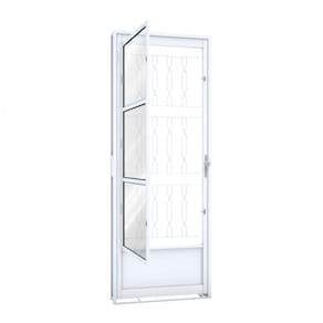 Porta de Aço Postigo 215x85cm com Grade Mosaico e Vidro Liso Riobras Branco