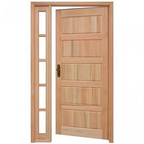 Porta montada de 5 almofadas horizontais. Composta por: 1 folha de porta, marco, guarnições para um lado, dobradiças e fechadura. Marco Com Vitrô de Um Lado. Folha da porta de 80cm. Fechadura Alavanca Stam. Porta de dobradiças. Produto pronto para instalação. Acompanha Batedor: Sim Acompanha Batente: Sim Acompanha Dobradiça: 02 Acompanha Fechadura: Sim Acompanha Guarnição: Sim Acompanha Manual de Instalação: Sim Acompanha Puxador: Não Acompanha Trinco: Não Altura: 213 cm codigo_ean: 7899641816100 Cor: Natural Cor do Batente: Marrom Cor do Produto: Natural Cor do Produto: Natural Elétrica: Não Escala de Brilho: Fosco Espessura: 3 cm Itens Inclusos: 1 folha de porta, marco, guarnições para um lado, dobradiças e fechadura. Lado de abertura: Direita Largura: 109 cm Largura do Batente: 9,4 cm Manual de Montagem e Instalação: https://product-hub-prd.madeiramadeira.com.br/662651/documents/ff20b4ba-7587-4875-a0fa-3f963a62645cvaodasesquadriasconvertido.pdf Marca: Rondosul Material da Dobradiça: Aço Material do Batente: Madeira Material Principal: Madeira Maciça Medida do Vão: 215cmx111cm Necessita Montagem: Não Número de Folhas: 01 Origem do Produto: Nacional Peso: 58 kg Possui Grade: Não Preenchimento da Porta: Maciça Recomendações de Uso, Manutenção e Limpeza: O produto deve ser pintado e bem instalado para haver garantia. Produto sem no mínimo duas demãos de pintura e/ou mal instalado e/ou mal conservado são situações que não são aceitas pela garantia. Aconselhamos a imunização contra insetos (cupim) com produto adequado, pois a madeira não é tratada na fábrica. Textura da Porta: Almofadada Tipo de Dobradiça: Simples Tipo de Madeira: Eucalipto Tipo de Porta: Abrir Vidro incluso: Não Marca: Não Informado