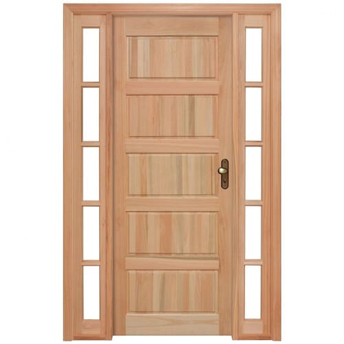Porta montada de 5 almofadas horizontais. Composta por: 1 folha de porta, marco, guarnições para um lado, dobradiças e fechadura. Marco Com Vitrôs Dos Dois Lados (Direita e Esquerda). Folha da porta de 90cm. Fechadura Alavanca Stam. Porta de dobradiças. Produto pronto para instalação. Acompanha Batedor: Sim Acompanha Batente: Sim Acompanha Dobradiça: 02 Acompanha Fechadura: Sim Acompanha Guarnição: Sim Acompanha Manual de Instalação: Sim Acompanha Puxador: Não Acompanha Trinco: Não Altura: 213 cm codigo_ean: 7899641816179 Cor: Natural Cor do Batente: Marrom Cor do Produto: Natural Elétrica: Não Escala de Brilho: Fosco Espessura: 3 cm Itens Inclusos: 1 folha de porta, marco, guarnições para um lado, dobradiças e fechadura. Lado de abertura: Esquerda Largura: 144 cm Largura do Batente: 9,4 cm Manual de Montagem e Instalação: https://product-hub-prd.madeiramadeira.com.br/662683/documents/5da2b9cc-2b86-4111-b35c-a94ca7f46917vaodasesquadriasconvertido.pdf Marca: Rondosul Material da Dobradiça: Aço Material do Batente: Madeira Material Principal: Madeira Maciça Medida do Vão: 215cmx146cm Necessita Montagem: Não Número de Folhas: 01 Origem do Produto: Nacional Peso: 77 kg Possui Grade: Não Preenchimento da Porta: Maciça Recomendações de Uso, Manutenção e Limpeza: O produto deve ser pintado e bem instalado para haver garantia. Produto sem no mínimo duas demãos de pintura e/ou mal instalado e/ou mal conservado são situações que não são aceitas pela garantia. Aconselhamos a imunização contra insetos (cupim) com produto adequado, pois a madeira não é tratada na fábrica. Textura da Porta: Almofadada Tipo de Dobradiça: Simples Tipo de Madeira: Eucalipto Tipo de Porta: Abrir Vidro incluso: Não Marca: Não Informado