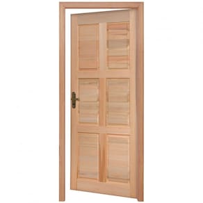 Porta montada de 6 almofadas verticais. Composta por: 1 folha de porta, marco, guarnições para um lado, dobradiças e fechadura. Marco simples. Fechadura Alavanca Stam. Porta de dobradiças. Produto pronto para instalação. Acompanha Batedor: Sim Acompanha Batente: Sim Acompanha Dobradiça: 02 Acompanha Fechadura: Sim Acompanha Guarnição: Sim Acompanha Manual de Instalação: Sim Acompanha Puxador: Não Acompanha Trinco: Não Altura: 213 cm codigo_ean: 7899641816209 Cor: Natural Cor do Batente: Marrom Cor do Produto: Natural Elétrica: Não Escala de Brilho: Fosco Espessura: 3 cm Itens Inclusos: 1 folha de porta, marco, guarnições para um lado, dobradiças e fechadura. Lado de abertura: Direita Largura: 84,5 cm Largura do Batente: 9,4 cm Manual de Montagem e Instalação: https://product-hub-prd.madeiramadeira.com.br/662717/documents/f4534f35-c889-41c3-9dbd-0d50d51c8ef6vaodasesquadriasconvertido.pdf Marca: Rondosul Material da Dobradiça: Aço Material do Batente: Madeira Material Principal: Madeira Maciça Medida do Vão: 215cmx86,5cm Necessita Montagem: Não Número de Folhas: 01 Origem do Produto: Nacional Peso: 45 kg Possui Grade: Não Preenchimento da Porta: Maciça Recomendações de Uso, Manutenção e Limpeza: O produto deve ser pintado e bem instalado para haver garantia. Produto sem no mínimo duas demãos de pintura e/ou mal instalado e/ou mal conservado são situações que não são aceitas pela garantia. Aconselhamos a imunização contra insetos (cupim) com produto adequado, pois a madeira não é tratada na fábrica. Textura da Porta: Almofadada Tipo de Dobradiça: Simples Tipo de Madeira: Eucalipto Tipo de Porta: Abrir Vidro incluso: Não Marca: Não Informado