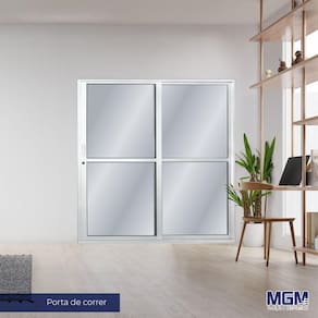 A Porta de Correr MGM é confeccionada com montantes tubulares e roldanas que possuem regulagem o que garante um bom funcionamento após a instalação. A fechadura dessa esquadria é do tipo \"bico de papagaio\" e possui puxadores internos tipo concha cega. Esta linha oferece produtos com vão de passagem na lateral ou central. Nas portas de três e seis folhas, a fechadura é instalada na folha externa e na folha interna o fecho é do tipo concha com gatilho. Conforme as normas, a parte inferior é composta por vidros de segurança (temperado). Peso por Caixa: 39,28Kg Vidro: Temperado Acompanha Batedor: Sim Acompanha Batente: Sim Acompanha Dobradiça: 3 Acompanha Fechadura: Sim Acompanha Grade: Não Acompanha Guarnição: Não Acompanha Manual de Instalação: Sim Acompanha Puxador: 02 Acompanha Trinco: Não Altura: 210 cm Ambiente: Interno e Externo codigo_ean: 7898457536042 Cor: Branco Cor: Branco Cor do Batente: Branco Cor do Produto: Branco Cor Predominante: Branco Dimensão da Máquina da Fechadura: 15.0000 Escala de Brilho: Brilhante Espessura: 3 cm Espessura do Vidro: 3 mm Itens Inclusos: 1 Porta de Correr Lado de abertura: Esquerda Largura: 120 cm Largura do Batente: 7 cm Material do Batente: Alumínio Material Principal: Alumínio Necessita Instalação: Não Necessita Montagem: Não Número de Folhas: 02 Peso: 39,28 kg Possui Grade: Não Possui Vidro: Sim Quantidade de Folhas: 02 Recomendações de Uso, Manutenção e Limpeza: Limpeza com água e sabão neutro. Tamanho: 210cm x 120cm Textura da Porta: Com detalhe vidro Tipo de Batente: Fixo Tipo de Parede: Alvenaria Tipo de Porta: Balcão Tipo de Vidro: Temperado Vidro incluso: Sim Ean: 7898457536042