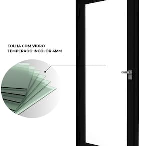 Beleza, leveza e transparência definem este modelo, ideal para quem busca um visual moderno e elegante. Produzida em alumínio com pintura eletrostática a pó, oferece durabilidade, resistência e acabamento impecável. Seu design limpo, com vidro temperado incolor de 0,4cm em peça única, proporciona integração visual entre os ambientes, ampliando a iluminação natural e valorizando o espaço.
