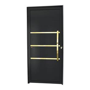 Porta de Aluminio Lambril 210x100cm com Puxador Super Evolution Brimak Preto Dourado