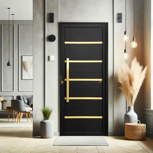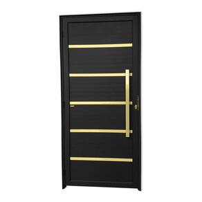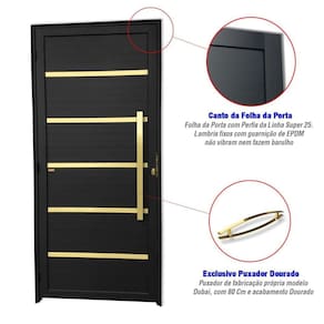 Portas de Abrir de Alumínio, Linha Super 25, Pintura Eletrostática Preta, 1 Folha de Abrir para o Lado Direito, Lambris Horizontais, 5 Frisos Escovados, Dourados e Envernizados, Puxador Dubai 80 Cm Escovado Dourado, Altura 210 Cm, Largura 90 Cm, Requadro 4,6 Cm, Garantia de 5 anos contra defeitos de fabricação. Ambientes Recomendados: Externo Acompanha Batedor: Sim Acompanha Batente: Sim Acompanha Fechadura: Sim Acompanha Guarnição: Não Acompanha Manual de Instalação: Sim Acompanha Trinco: Não Altura: 210 Ambiente Principal: Sala de Estar Cor: Preto Dourado Cor do Batente: Preto Cor do Produto: Preto Dourado Escala de Brilho: Fosco Espessura: 4.6 Isolamento Acústico: Não Itens Inclusos: 1 Porta completa montada com Fechadura, Dobradiças e embalagem protetora. Acompanha Puxador Lado de abertura: Direita Largura: 90 Largura do Batente: 4.6 Linha ou Coleção: Super 25 Manual de Montagem e Instalação: https://product-hub-prd.madeiramadeira.com.br/869658/documents/651a8cdd-4485-49cf-934c-649ef3d8b99a15manualesquadriasaluminio.pdf Material da Dobradiça: Alumínio Material do Batente: Alumínio Material do Puxador: Alumínio Necessita Montagem: Não Origem do Produto: Nacional Peso: 27.32 Possui Grade: Não Tamanho: 210cm x 90cm Tipo de Dobradiça: Simples Tipo de Parede: Alvenaria Tipo de Porta: Abrir Tipo de Puxador: Externo Vidro incluso: Não
