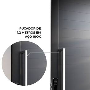 Equipada com fechadura digital Intelbras para maior segurança e praticidade, conta ainda com puxador de inox de 1,20 m e pivô em aço inox, que reforçam sua durabilidade e design moderno.