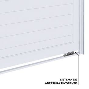 Conta com puxador em aço inox de 80 cm, fechadura rolete e pivô em alumínio cromado, combinando sofisticação e funcionalidade.