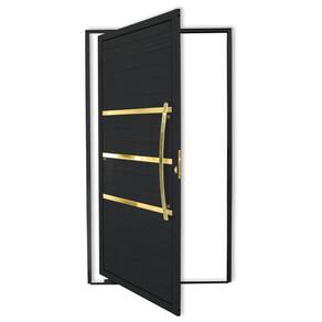 Porta de Aluminio Pivotante Lambril 210x100cm com Puxador Super Evolution Brimak Preto Dourado