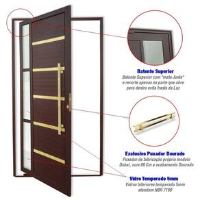 Porta Pivotante de Alumínio, Linha Super 25, Pintura Eletrostática Corten, 1 Folha de Abrir para o Lado Direito, Vidros inferiores Lisos Incolores 5mm Temperados, Lambris Horizontais e 5 Frisos Escovados, Dourados e Envernizados, Puxador Milão 80 Cm Escovado Dourado, Altura 210 Cm, Largura 120 Cm, Requadro 4,6 Cm, Garantia de 5 anos contra defeitos de fabricação. Ambientes Recomendados: Externo Acompanha Batedor: Sim Acompanha Batente: Sim Acompanha Fechadura: Sim Acompanha Guarnição: Não Acompanha Manual de Instalação: Sim Acompanha Trinco: Não Altura: 210 Ambiente Principal: Sala de Estar Cor: Marrom Corten Dourado Cor do Batente: Marrom Cor do Produto: Marrom Corten Dourado Cor do Vidro: Incolor Escala de Brilho: Fosco Espessura: 4.6 Espessura do Vidro: 5 Isolamento Acústico: Não Itens Inclusos: 1 Porta completa montada com Fechadura, Batente Pivot devidamente embalada. Acompanha Puxador Lado de abertura: Direita Largura: 120 Largura do Batente: 4.6 Linha ou Coleção: Super 25 Manual de Montagem e Instalação: https://product-hub-prd.madeiramadeira.com.br/869585/documents/9996d864-4928-40dd-a50e-a9877aa5fc8c91manualesquadriasaluminio.pdf Material da Dobradiça: Alumínio Material do Batente: Alumínio Material do Puxador: Alumínio Necessita Montagem: Não Origem do Produto: Nacional Peso: 34.87 Possui Grade: Não Tamanho: 210cm x 120cm Tipo de Dobradiça: Pivotante Tipo de Parede: Alvenaria Tipo de Porta: Pivotante Tipo de Puxador: Externo Tipo de Vidro: Temperado Vidro incluso: Sim