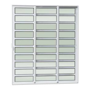 Porta de Correr 3 Folhas 1/3 de Alumínio, Linha Elite, Pintura Eletrostática Branca, 3 Folhas Móveis, Vidro Liso Incolor 3mm, Travessas e Vidros Horizontais, Fechadura c/chave Tetra e Fecho automático para travamento das Folhas, Altura 210 Cm, Largura 120 Cm, Requadro 10,6 Cm, Garantia de 5 anos contra defeitos de fabricação. Ambientes Recomendados: Externo Acompanha Batente: Sim Acompanha Guarnição: Não Acompanha Manual de Instalação: Não Acompanha Puxador: 01 Altura: 210 Ambiente Principal: Sala de Estar Cor: Branco Cor do Batente: Branco Cor do Produto: Branco Cor do Vidro: Incolor Elétrica: Não Escala de Brilho: Brilhante Espessura: 10.6 Espessura do Vidro: 3 Isolamento Acústico: Não Itens Inclusos: 1 Porta de Correr montada, com vidros ,fechos e fechadura tetra Lado de abertura: Dupla Largura: 120 Largura do Batente: 10.6 Linha ou Coleção: Elite Manual de Montagem e Instalação: https://product-hub-prd.madeiramadeira.com.br/916885/documents/5f1fd0e9-fe78-45a1-b920-2b5424270e0235manualesquadriasaluminio.pdf Material do Batente: Alumínio Material do Puxador: Alumínio Necessita Montagem: Não Número de Folhas: 03 Origem do Produto: Nacional Peso: 46 Tamanho: 210cm x 120cm Tipo de Parede: Alvenaria Tipo de Porta: Correr Tipo de Puxador: Embutido Tipo de Vidro: Liso Incolor Vidro incluso: Sim