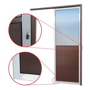 Porta de Correr Suspensa 210cm X 70cm Meia Lambril Meia Vidro Dir L.25 Brimak Mix Corten