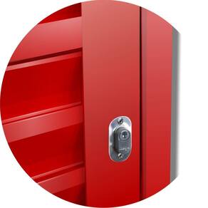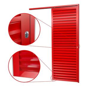 Porta de Correr Suspensa de Alumínio, Linha L.25, Pintura Eletrostática Vermelha, 1 Folha Suspensa de Correr para o Lado Direito, Fechamento tipo Veneziana, Fechadura Bico de Papagaio, Altura 210 Cm, Largura 80 Cm, Requadro 4,5 Cm, Garantia de 5 anos contra defeitos de fabricação..