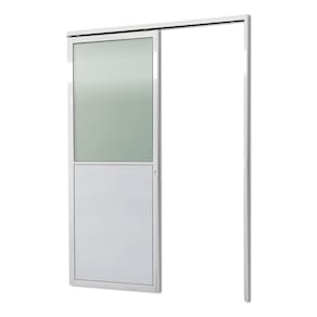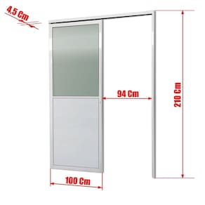 Porta de Correr Suspensa 210x100cm Meia Lambril Meia Vidro Dir L.25 Branco