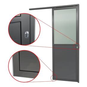Porta de Correr Suspensa 210x100cm Meia Lambril Meia Vidro Dir L.25 Cinza