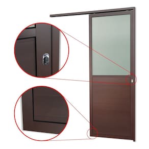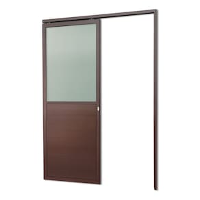 Porta de Correr Suspensa 210x100cm Meia Lambril Meia Vidro Dir L.25 Corten