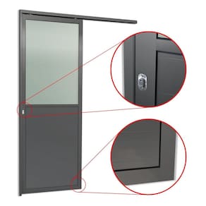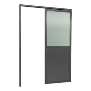 Porta de Correr Suspensa 210x100cm Meia Lambril Meia Vidro Esq L.25 Cinza