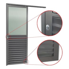 Porta de Correr Suspensa 210x100cm Meia Veneziana Meia Vidro Esq L.25 Cinza