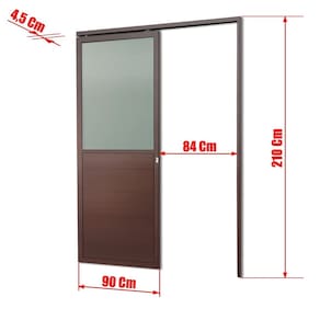 Porta de Correr Suspensa 210x90cm Meia Lambril Meia Vidro Dir L.25 Corten