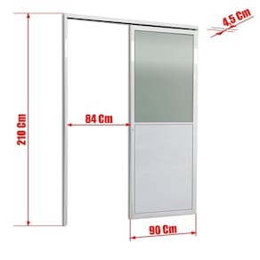 Porta de Correr Suspensa 210x90cm Meia Lambril Meia Vidro Esq L.25 Branco