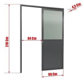 Porta de Correr Suspensa 210x90cm Meia Lambril Meia Vidro Esq L.25 Cinza