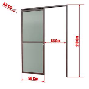 Porta de Correr Suspensa de Alumínio, Linha L.25, Pintura Eletrostática Corten, 1 Folha Suspensa de Correr para o Lado Direito, Vidro Mini Boreal 0,4cm, Fechadura Bico de Papagaio, Altura 210 Cm, Largura 90 Cm, Requadro 4,5 Cm, Garantia de 5 anos contra defeitos de fabricação..