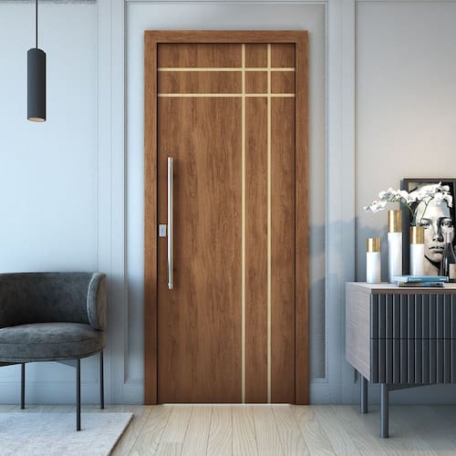 Porta De Madeira Frisada U.V 210cm x 90cm - R40T - Cor: Imbuia