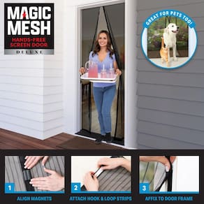 - A malha mágica autêntico: como visto na TV e confiável por mais de 5 milhões de clientes satisfeitos, a Magic Mesh é a rede de insetos autêntico para portas, projetada para entrada e saída sem esforço sem usar as mãos; agora disponível para portas individuais, portas duplas e até mesmo portas de garagem.